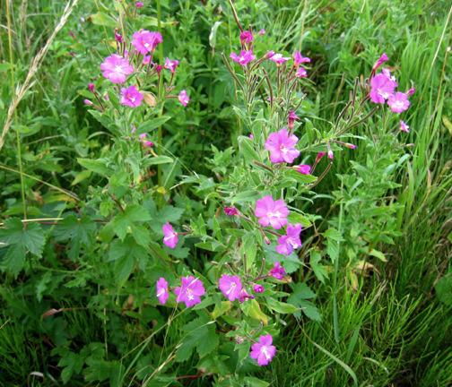 Willowherbs mostly have spikes of stalked flowers and flower in high summer. Both rosebay willowherb and great willowherb are a familiar sight. The former, also known as fireweed, is quick to colonise waste ground such as after a fire. The latter is at home in any patch of damp ground.
