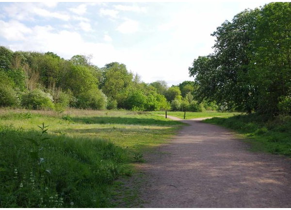 A substantial Forestry Commission woodland surrounding Harold Court (now residential flats), created on former farmland. Much of it has been planted with trees, mainly native broadleaves with some scots pine and larch, supplementing the surrounding tree belts, which include groups of mature black poplar and horse chestnut, and the original hedges, which include wild service trees.