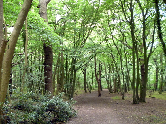 The topography is complex, with many ridges, slopes and marshy hollows, and this makes for very varied vegetation. It has a mixture of trees, including oak, hornbeam, ash (some of it coppiced), sweet chestnut and wild cherry. Along the ancient woodbank on the western boundary are some large wild service trees.