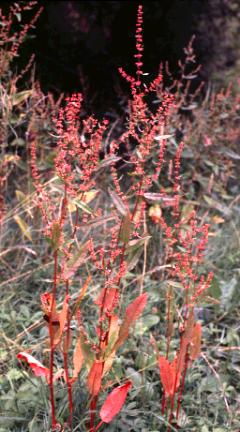 Arrow-shaped leaves grow from the base and up the stem; sharp-tasting, they are used in salads, soups and sauces