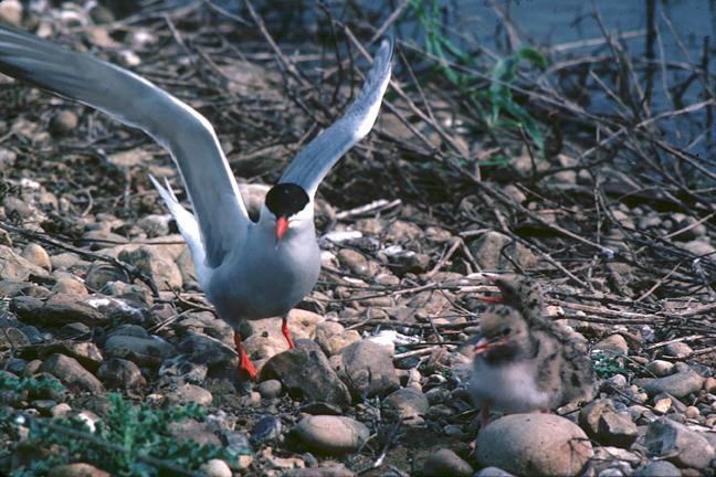 Nest is a unlined hollow on a beach or saltmarsh at the coast and increasingly in gravel pits; also takes readily to rafts
