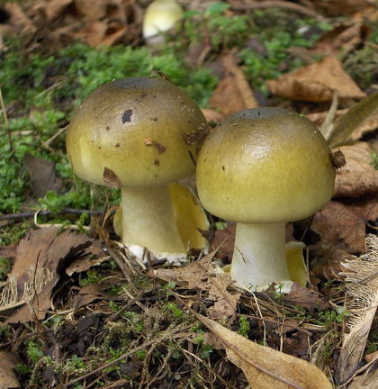 Olive green or yellowish green cap is distinctive, along with the white gills and stem and volva of all amanitas