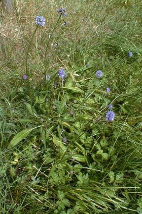 Food plant of the caterpillars of the marsh fritillary butterfly, now extinct in Essex and rare elsewhere in Britain