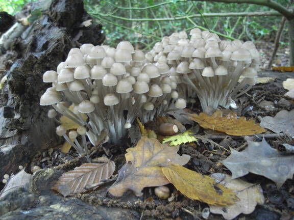 Pale, fragile-looking fungi, with the bell-shaped cap characteristic of ink caps