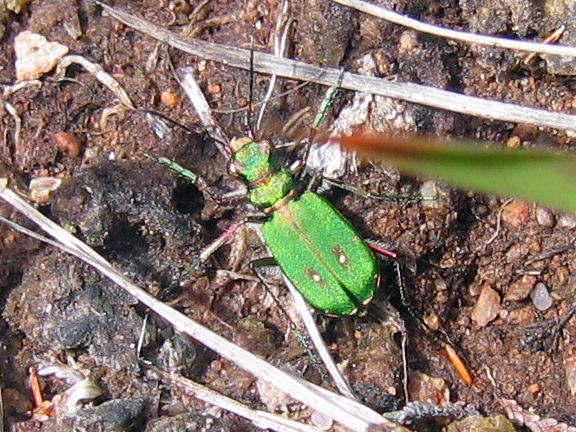 Commonest tiger beetle (sometimes classed with ground beetles) in Britain and much of Europe