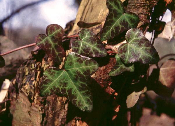 An evergreen woody climber that carpets the floor of some woods and climbs high into trees