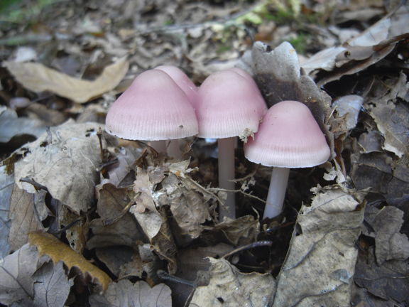 Delicate little fungus with a pink or lilac cap with a striated margin, up to 8 cm tall