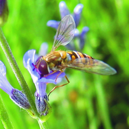 Males establish and defend territories and hover over them to attract females, who lay eggs on plants with aphid colonies
