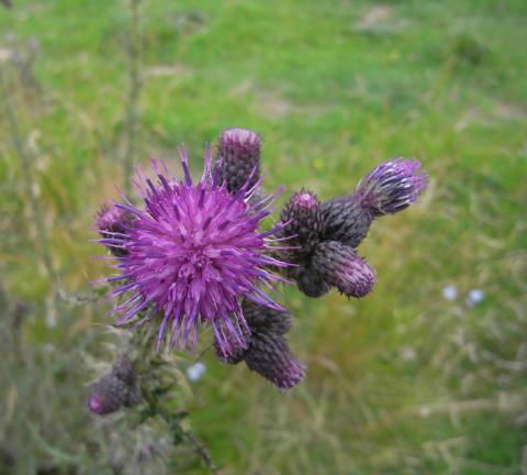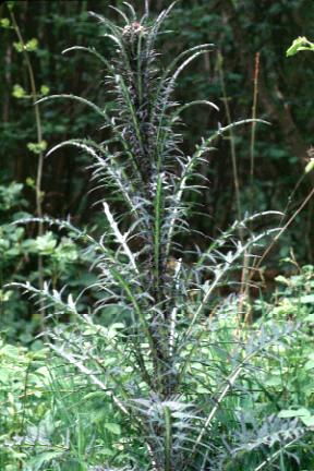 A very tall thistle of damp meadows and woods, sometimes reaching 2m. in height