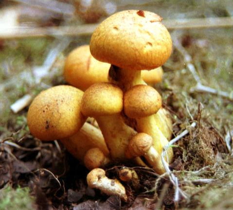 A hansome golden-yellow fungus that grows in clumps on tree stumps and at the base of trees