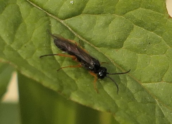 Most of the 40+ species have a slender black or black-and-red abdomen and long black legs