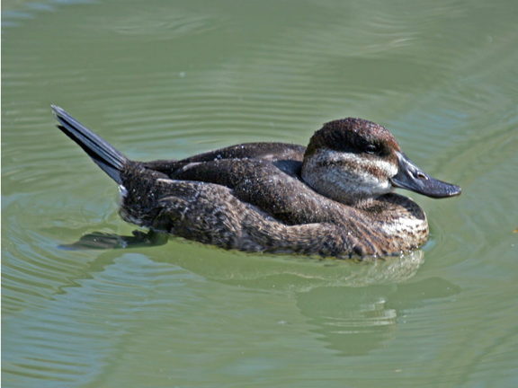 Small dumpy duck with cocked stiff tail, introduced from N. America in the mid-1900s and now widespread across Europe