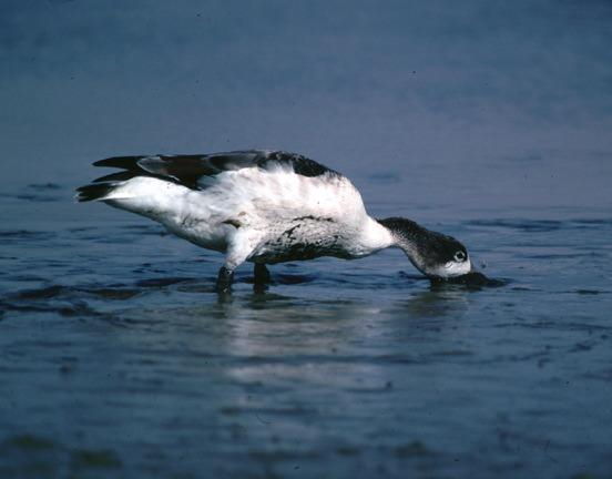 Follows the ebb and flow of the tide, dabbling or up-ending to feed on crustaceans and molluscs