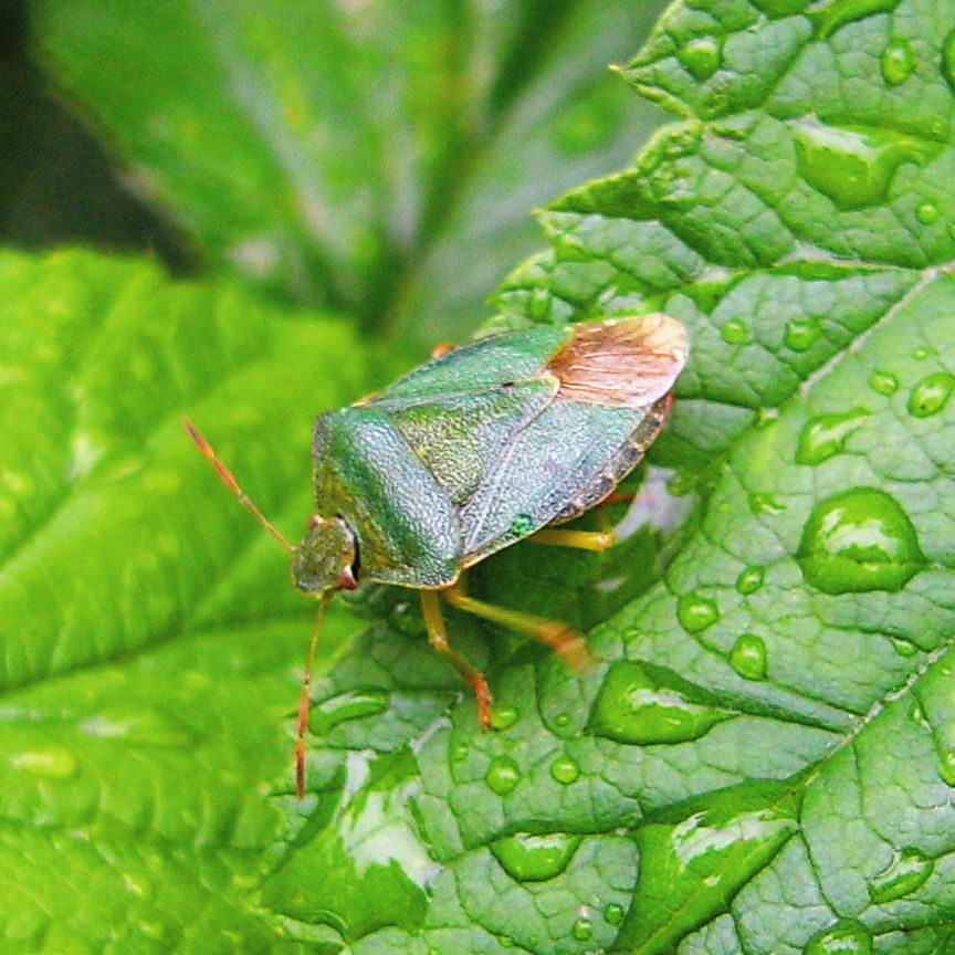 Shield bugs are similar to beetles, but instead of biting jaws they have straw-like mouths to suck sap out of plants