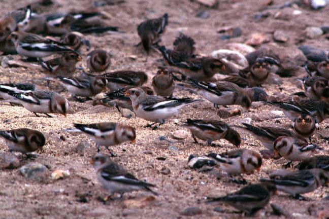 Confiding birds, feeding on seeds along seawalls and shingle, sometimes in small flocks, keeping low on the ground