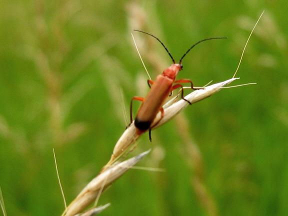 Soldier beetles are brightly coloured little insects often seen on the flat flowerheads of plants such as hogweed in summer