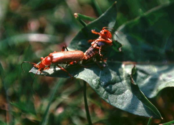 Females mate on flowerheads in early summer and lay their eggs in the soil