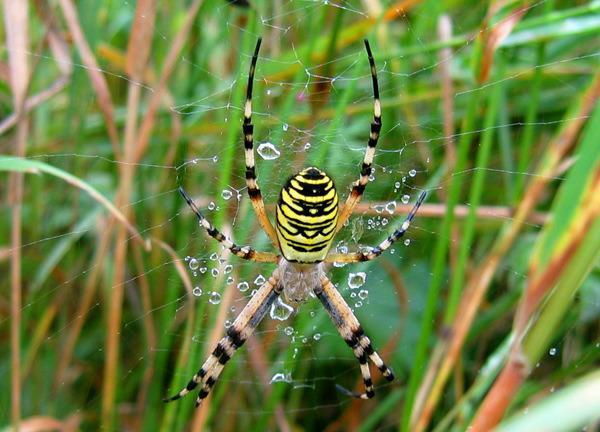 A striking large spider with wasp-like markings, probably designed to deter predators