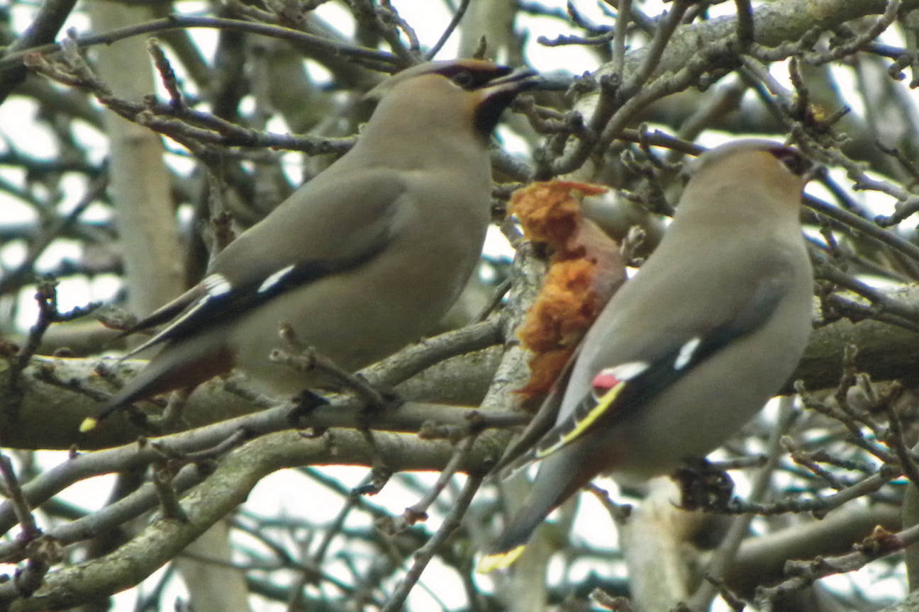 Spectacular crested birds arriving in flocks when winter food is scarce on the continent