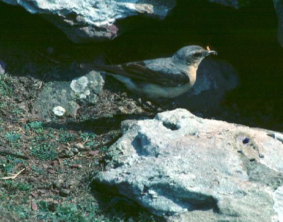 Perches openly low down on a rock or post, darting after food and often bobbing
